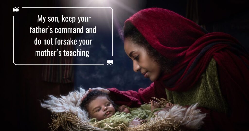 “My son, keep your father’s command and do not forsake your mother’s teaching.”